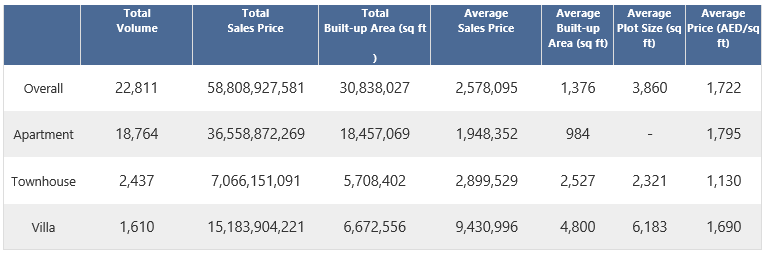 The average price for properties in Dubai is AED 2,578,095. However, homes are fairly spacious at this average price. On average, they have about 1,376 square feet of indoor space and a plot size of around 3,860 square feet.