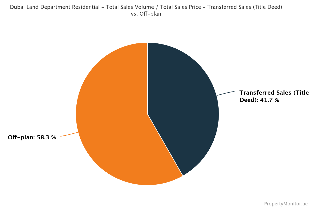 Oqood transactions are used to track off-plan property sales, but many villa and townhouse sales are recorded with Title Deeds and listed as completed properties in Dubai Land Department data, thereby inflating their market share. After making this adjustment, we found that off-plan transactions comprise most of the market, with a 58.3% share.
